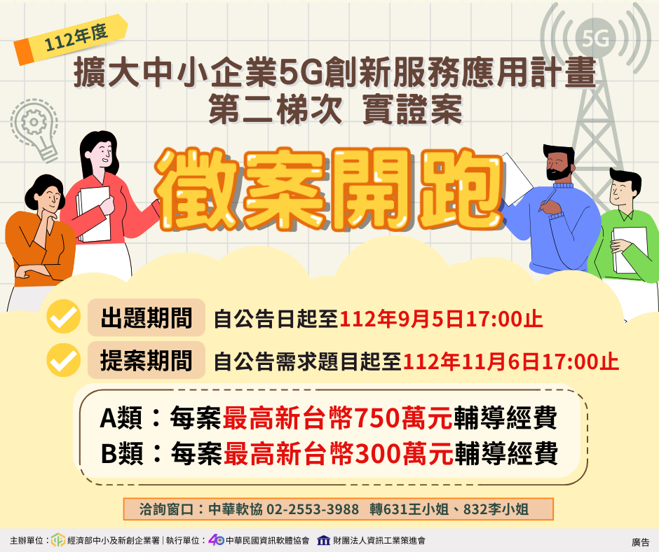 公告「擴大中小企業5G創新服務應用計畫」第二梯次實證案作業規範